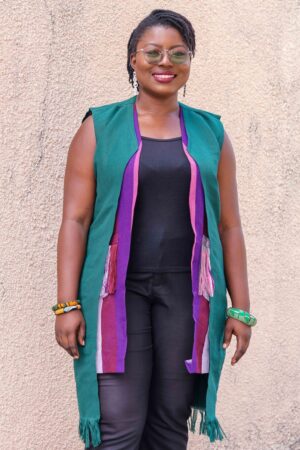 A structured shirt pairs effortlessly with flowing batik palazzo pants in Evolution, blending classic tailoring with modern movement. The ensemble honors vintage sophistication while embracing contemporary freedom.