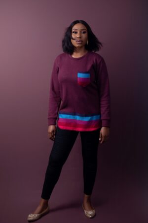 A structured shirt pairs effortlessly with flowing batik palazzo pants in Evolution, blending classic tailoring with modern movement. The ensemble honors vintage sophistication while embracing contemporary freedom.